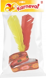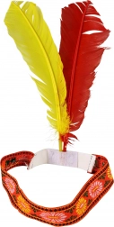 Vă prezentăm o minunată pălărie de cap de indian, ideală pentru oricine iubește aventura și să se joace de-a indienii. Această pălărie este decorată cu pene colorate și broderii florale, oferind costumului tău o notă unică.