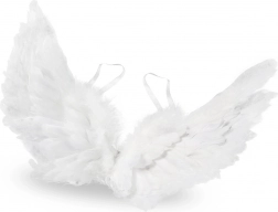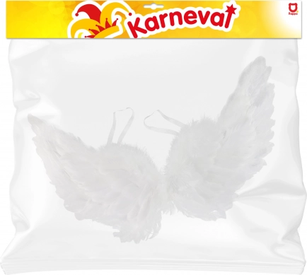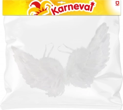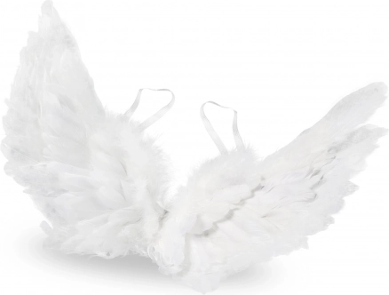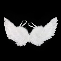 Aripi îngerești ușoare și elegante acoperite cu pene albe, un accesoriu ideal pentru un costum de înger. O alegere excelentă pentru Moș Nicolae, serbări de Crăciun, sesiuni foto sau carnavaluri. Curelele elastice asigură un confort sporit.