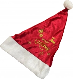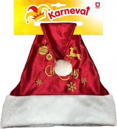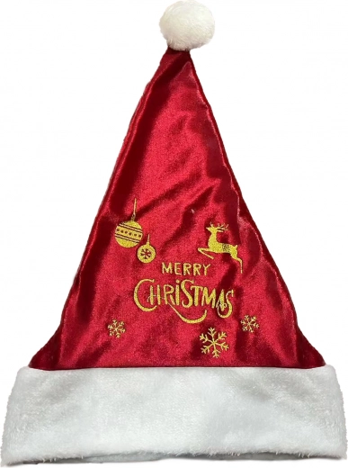 Această căciulă de Crăciun elegantă este un supliment excelent pentru toate ocaziile de Crăciun. Baza sa roșie este înfrumusețată cu un imprimeu decorativ auriu care atrage atenția. Bumbacul alb din partea de sus adaugă căciulii un aspect tradițional.