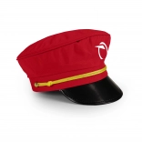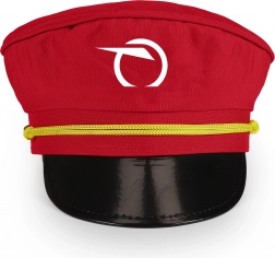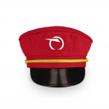 Șapcă roșie cu stil cu sigla companiei feroviare slovace, cozoroc negru lucios și șnur galben. Ideală pentru joaca de-a impiegatul.