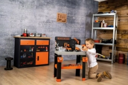 Atelier de lucru realist pentru copii de la Smoby cu 83 de piese de accesorii, inclusiv 7 unelte și un vehicul. Foarte stabil cu suficient spațiu pentru creativitatea copiilor. O alegere excelentă pentru copiii care se joacă de-a meșterii adevărați.