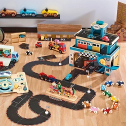 Această jucărie sprijină motricitatea fină, coordonarea și aptitudinea de colaborare. Datorită construcției robuste și designului universal, este compatibilă cu majoritatea mașinuțelor metalice obișnuite. Conținutul pachetului include garajul, o mașinuță și patru stegulețe de semnalizare. Acest produs este ideal pentru copiii de până la 3 ani, care adoră să participe la jocuri comune.