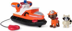 Zuma, înalt de peste 5 cm în costumul său de pompier, este gata să salveze situația. Bărcuța de pompieri este echipată cu un colac de salvare atașat de o linie, asigurând o mulțime de aventuri pline de acțiune. Zuma are un farmec deosebit datorită unui mic raton care poate fi salvat. Copiii pot apăsa butonul pentru a lansa colacul de salvare în care ratonul se potrivește perfect. Datorită stilului original Patrula Căţeluşilor, această jucărie arată exact ca în serial, inspirând copiii să trăiască aventuri.