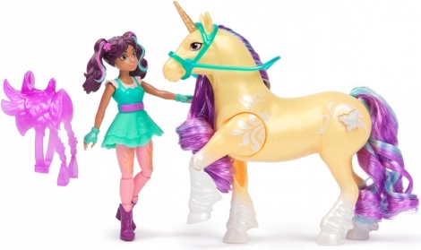 Explorează lumea fanteziei cu acest set ce conține o păpușă Sophia de 11 cm înălțime, cu detalii realiste și articulații mobile. Unicornul Steaua are 12 cm și este împodobit cu detalii magice, inclusiv sa de tip clip transparent.
