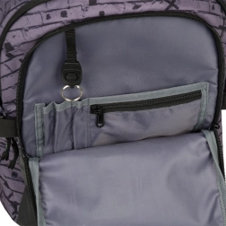 Pe partea din față sunt două curele, ideale pentru fixarea unei skateboard, jachete sau căști, lucru apreciat în special de către elevii activi. Rucsacul este realizat din material rezistent și impermeabil și este echipat cu elemente reflectorizante pentru siguranță în condiții de vizibilitate redusă. Ca bonus, veți găsi un breloc metalic în formă de skateboard.