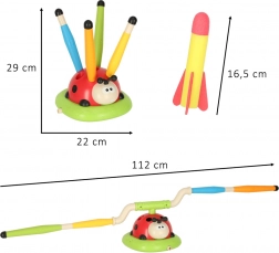 Setul include: buburuză (partea principală), separator din plastic, diferite lungimi și tipuri de țevi pentru sărituri, pompă de picior, inele pentru aruncare, săgeți, telecomandă și șurubelniță de asamblare. Totul proiectat cu grijă pentru un joc sigur și educativ.