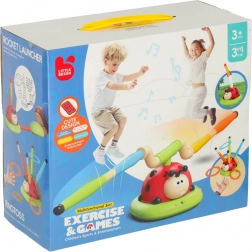 Descoperiți magia jucăriei 3în1, care aduce ore nesfârșite de distracție. Săritul în ritmul muzicii oferă posibilitatea de a regla dificultatea prin setarea înălțimii de rotire a bastoanelor. Aruncarea la țintă îmbunătățește precizia și coordonarea. Trăgătorul de săgeți vă provoacă să prindeți reflexiv în zbor.