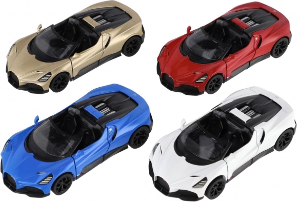Descoperă supercarul iconic în format de buzunar: modelul metalic BUGATTI MISTRAL de la Kinsmart cu finisare precisă, mecanism pull-back pentru rulare vioaie și uși deschizibile. Detalii realiste, combinație de calitate din metal și plastic și lungime compactă de 13 cm – pe placul copiilor și colecționarilor deopotrivă.