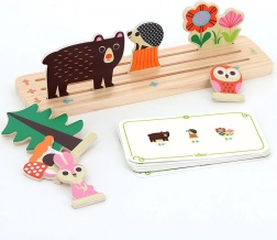 Puzzle logic din lemn cu ilustrații frumoase de Ingela P. Arrhenius este ideal pentru dezvoltarea imaginației spațiale, gândirii logice și motricității fine a copiilor. Cu ajutorul pieselor de lemn și al cărților de joc, copiii învață să perceapă relațiile spațiale precum stânga, dreapta, sus și jos conform instrucțiunilor.
