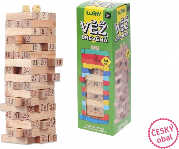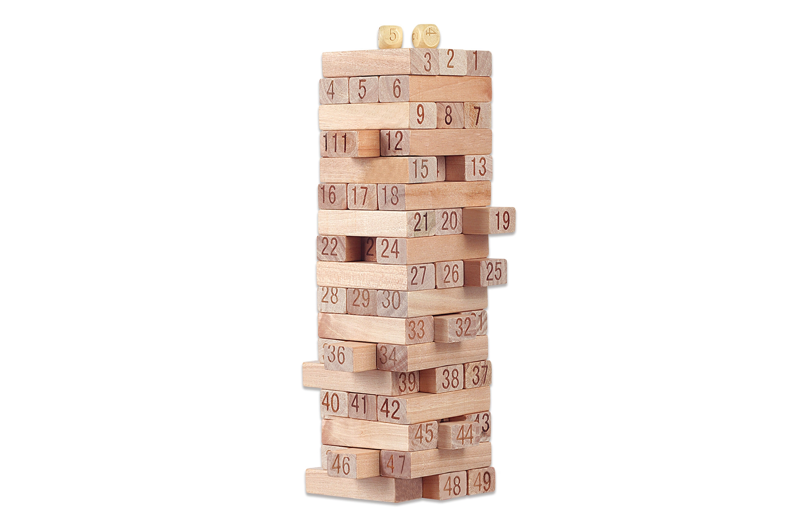 turn din lemn clasic cu numere, care cu siguranță va distra întreaga familie! Conține 54 de piese care așteaptă să fie asamblate într-un turn stabil.<div>