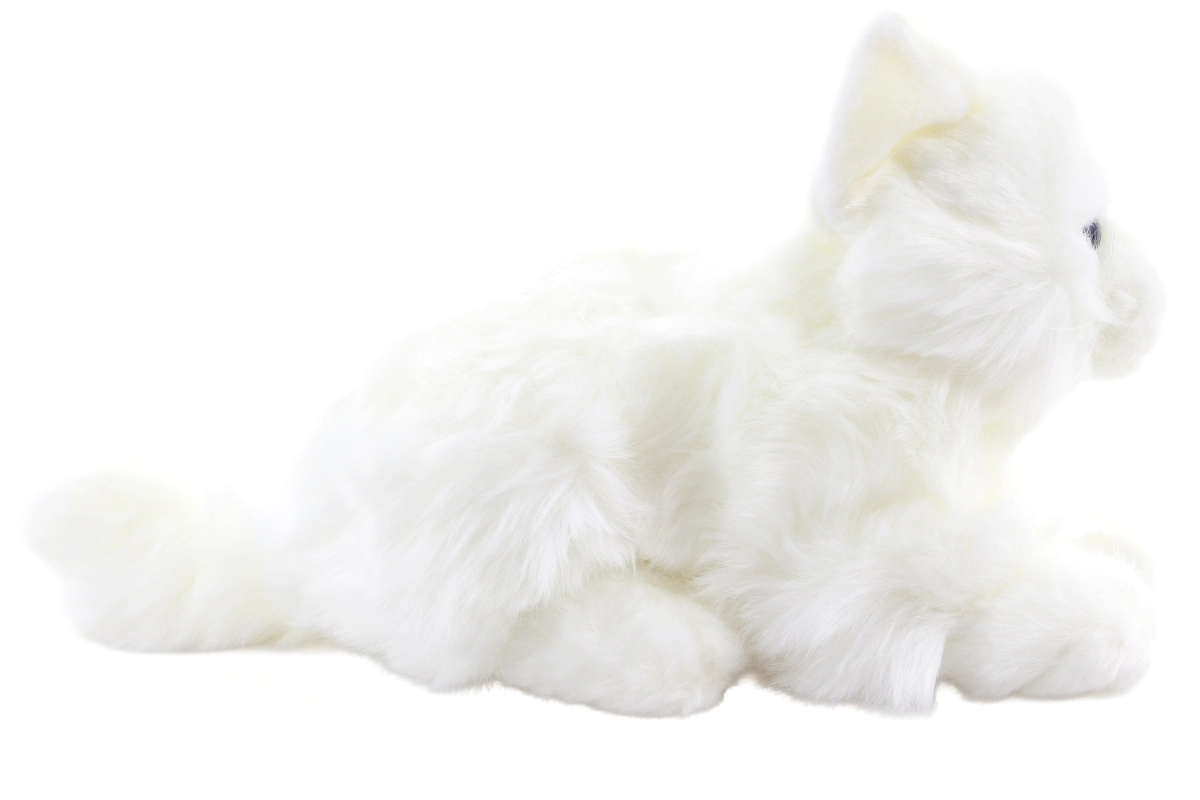 Această pisică de pluș albă, în poziție culcată, va deveni partenerul fidel pentru îmbrățișări zilnice. Suprafața moale, detaliile fine și forma realistă susțin senzația de siguranță și dezvoltă imaginația în timpul jocului.