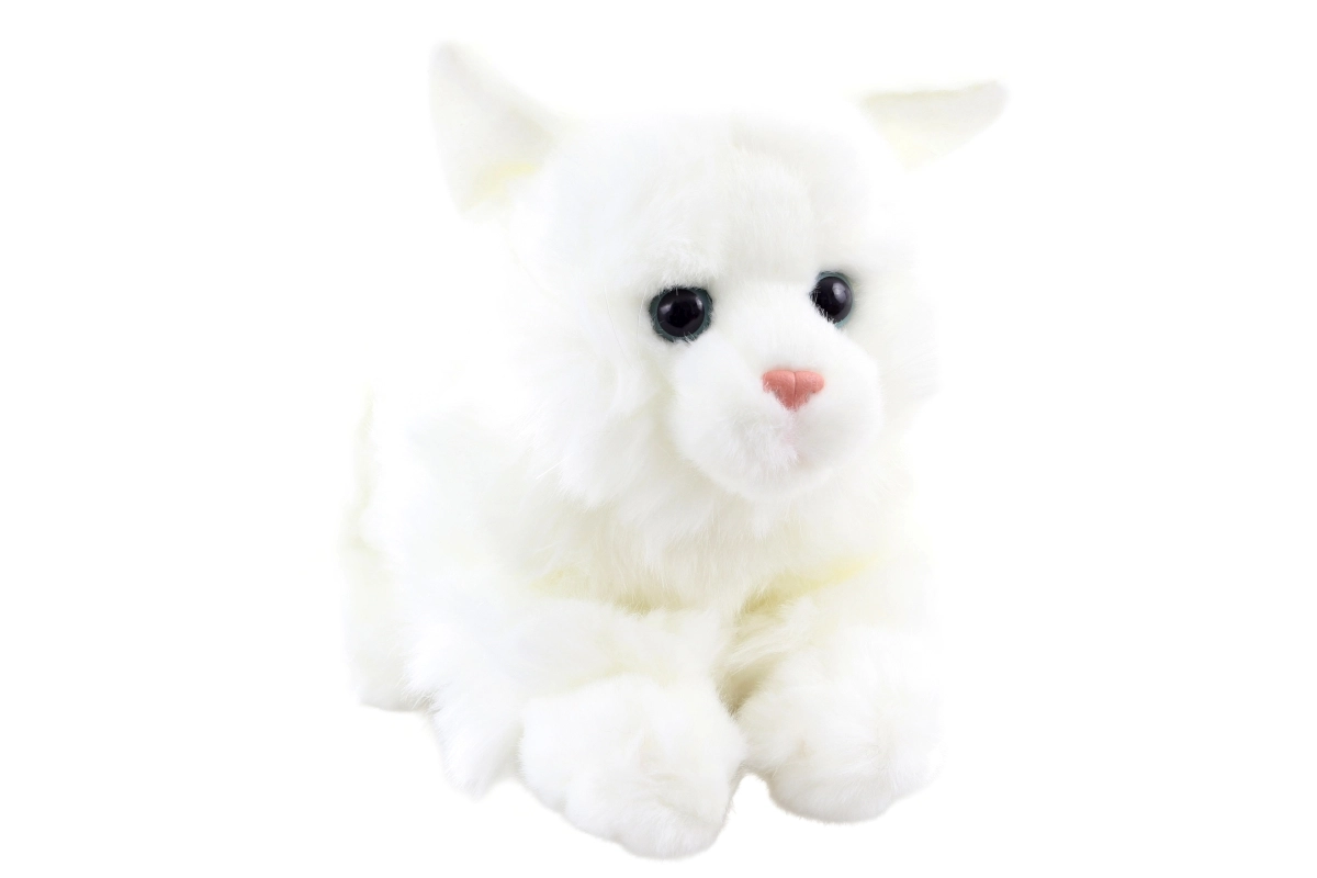Adorabila pisică de pluș albă, în variantă culcată, este realizată din materiale moi și catifelate, ideală atât pentru îmbrățișat, cât și pentru joacă. Datorită execuției eco‑friendly, îi va încânta pe copii și pe părinți, este potrivită de la 0+ și, datorită dimensiunilor sale compacte, se potrivește în pătuț, cărucior și este grozavă pentru călătorii.