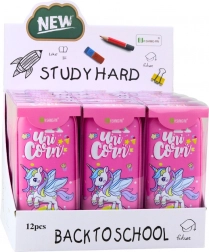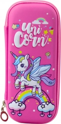 Interiorul penarului este proiectat cu accent pe maximul confort al utilizatorului – conține suporturi elastice pentru pixuri și creioane și un buzunar cu plasă cu fermoar, ideal pentru depozitarea lucrurilor mici, gume și ascuțitori. Întregul penar este de o culoare roz aprins, cu imprimare cu un unicorn drăguț care va cuceri inimile tuturor copiilor.