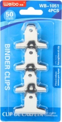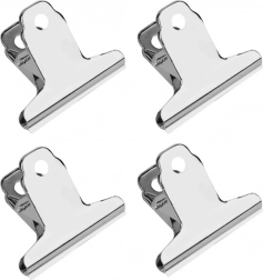Aceste cleme sunt fabricate din metal durabil, ceea ce garantează longevitatea și posibilitatea reutilizării. Forma lor simplă și suprafața cromată, lucioasă, le oferă un aspect profesional. Datorită găurii din mâner, puteți agăța cu ușurință clemele pe tablă sau cârlig.