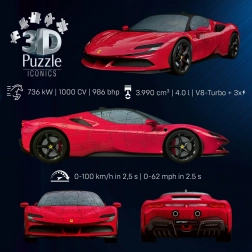 Bucură-te de combinația unică dintre puzzle și modelism. Acest model 3D realist al mașinii FERRARI SF90 STRADALE, în roșul caracteristic, este format din 108 piese ce se îmbină perfect datorită tehnologiei EasyClick – fără lipici. După asamblare obții o decorațiune atractivă cu roți rotative, gata de expus.