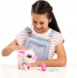 Este inclus un biberon roz. Hrănește-ți purcelușul, mângâie-l și urmărește-i reacțiile – îngrijirea animalului de companie ca în realitate.