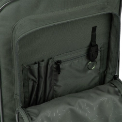 - Compartimentul frontal include un organizator practic și o carabină detașabilă pentru chei.