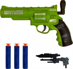 Include un revolver stilat cu 3 săgeți moi. Perfect pentru antrenarea preciziei și jocuri dinamice fără riscuri.