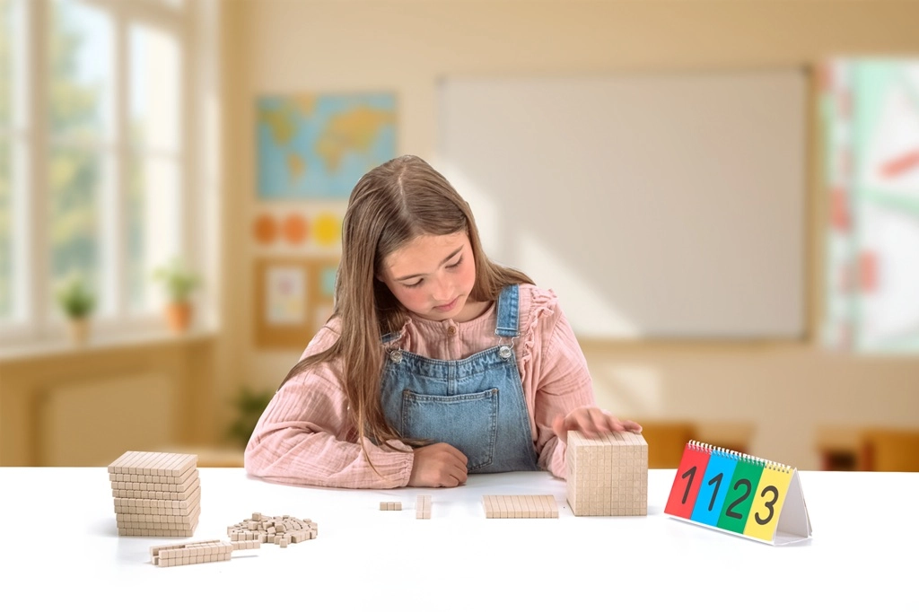 Setul Dienes este un instrument important pentru predarea vizuală a matematicii, ajutând copiii să înțeleagă legăturile dintre unități, zeci, sute și mii. Prin manipularea cuburilor, elevii învață structuri numerice și își dezvoltă înțelegerea valorii poziționale a cifrelor. Acest instrument este potrivit pentru munca în grup și individuală, susține compararea volumelor și dezvoltă capacitatea de imaginație spațială.