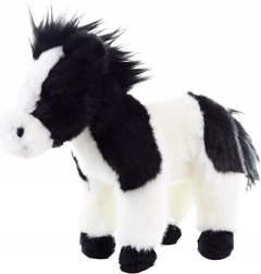 Calul de pluș are un model alb-negru realist, care conferă un aspect autentic. Mâna și coada sa moale îi amplifică caracterul realist.