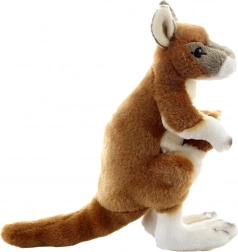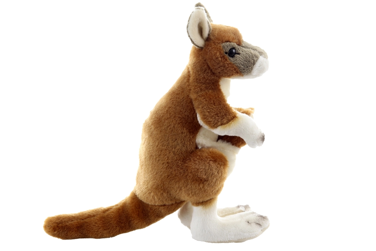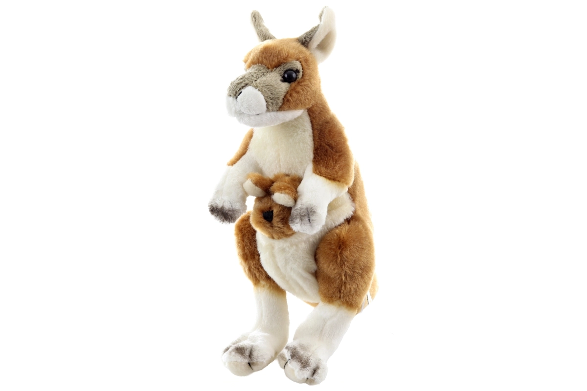 Un cangur de pluș adorabil, cu puiul în marsupiu, înălțime 23 cm, care va bucura atât micii, cât și marii iubitori de animale. Este extrem de moale, plăcut la atingere și potrivit încă de la naștere. Datorită execuției de calitate și materialelor prietenoase cu mediul, este ideal ca primă jucărie de îmbrățișat și ca decorațiune pentru camera copilului. Execuție eco-friendly, pluș fin și moale și sigur pentru copii 0+ fac din acest cangur un cadou grozav.