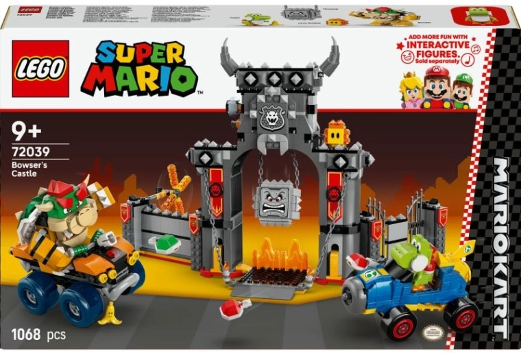 Condu, driftează și trage cu carapace din quadul lui Bowser și kartul Mach 8 al lui Yoshi, doboară ziduri și ferește-te de capcane. Prin adăugarea figurinelor interactive LEGO Mario, LEGO Luigi sau LEGO Peach (se vând separat) deblochezi sunete, reacții și recompense de joc ca în jocul digital – ideal pentru joacă solo sau în grup.