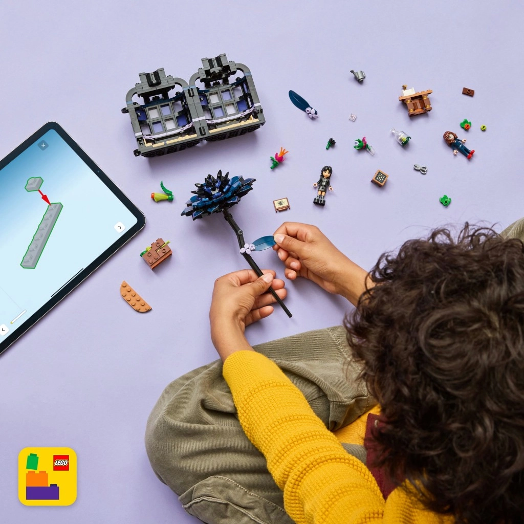 Două mini-păpuși – Wednesday Addams și profesoara Marilyn Thornhill – stimulează imaginația și adaugă o atmosferă plină de suspans. Datorită detaliilor bine gândite, elementelor mobile și opțiunilor de aranjare, setul este excelent pentru expunere și joacă. Cu aplicația LEGO Builder, copiii mai mari pot asambla cu ușurință modelul, îl pot roti în 3D și urmări progresul.