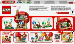 Descoperiți farmecul petrecerii de acasă a lui Toad. Acest set colorat oferă o casă detaliată a lui Toad cu bucătărie, dormitor (cu un tablou al castelului Peach) și piese de mobilier detașabile pentru reconfigurare ușoară. Scena exterioară cu masă de picnic, accesorii de petrecere și pick-up-ul construit cu platou rotativ invită la joc creativ și povești din lumea jocurilor SUPER MARIO.