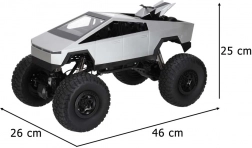 Acest pickup telecomandat oferă o distracție excelentă pe terenuri dure datorită abilităților sale, precum manevrarea unghiurilor de până la 45° și raza de 25 de metri la 2.4 GHz. Modelul are efect de iluminare, ceea ce aduce o experiență realistă, iar alimentarea cu acumulator de 7.4V oferă până la 20 de minute de conducere.
