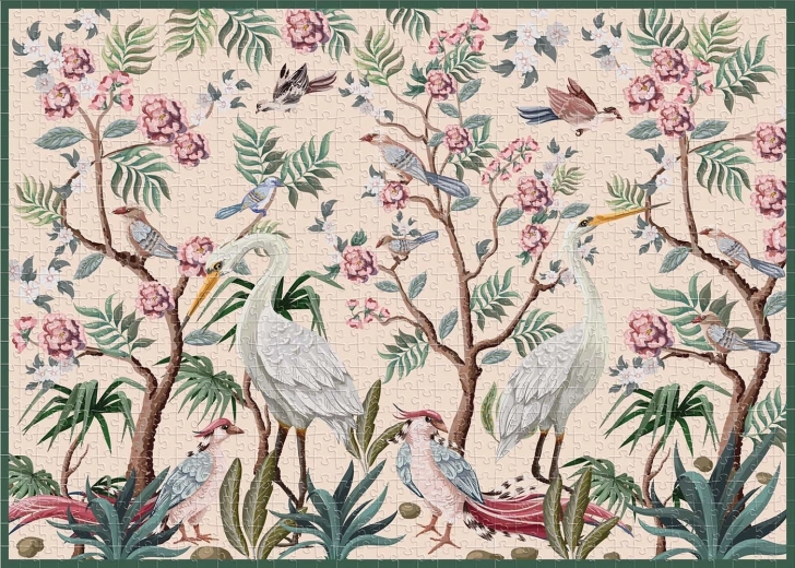 Descoperiți frumusețea grădinii misterioase cu puzzle-ul nostru de 1000 de piese, unde păsările își întrepătrund aripile printre copacii înfloriți. Perfect pentru iubitorii de natură și colecționarii de puzzle-uri.