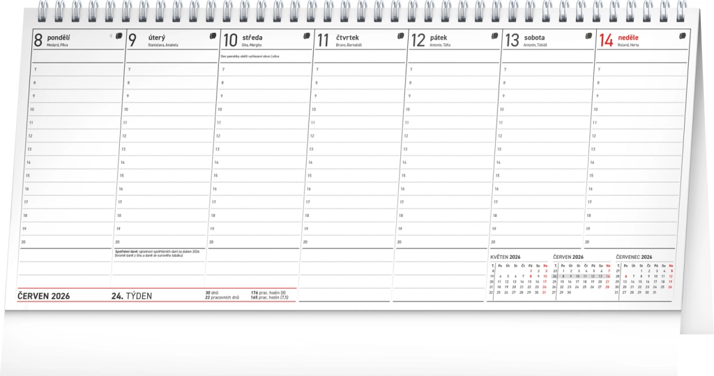 Calendarul de masă Notique pentru anul 2026 este ideal pentru planificare cu accent pe termene fiscale. Calendarul în format coloană include nume cehe, sărbători și zile comemorative.
