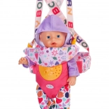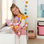 Marsupiul BABY born este un accesoriu moale și confortabil pentru purtat, datorită căruia copiii își pot lua peste tot păpușa preferată. Bretelele late și căptușite, cu reglaj lin, se adaptează ușor copiilor de mărimi diferite și oferă o purtare sigură și stabilă. Stilul este completat de jucăușele ornamente prin apăsare, ce pot fi schimbate după dispoziție, și de o cutiuță practică pentru depozitarea lor.