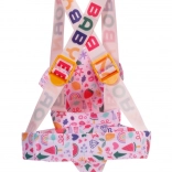 Bretele late, căptușite și încrucișate, cu catarame sigure, se adaptează ușor copiilor de mărimi diferite și țin păpușa stabil lângă corp.