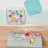 Setul de ornamente colorate ce se prind ușor prin apăsare permite copiilor să schimbe aspectul marsupiului în funcție de dispoziție. Include și o cutiuță pentru depozitare.