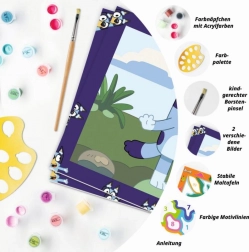 Setul CreArt Bluey: Distracții Cățeilor aduce în casa dumneavoastră bucurie și creativitate. Prin colorare după numere veți crea o lucrare uimitoare, care va atrage atenția pe orice perete. Pictura este o activitate grozavă pentru relaxare, îmbunătățirea abilităților și focalizare.