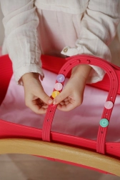 Butoanele colorate se pot atașa ușor pe mânere și pe marginea coșului. Copiii își pot personaliza pătuțul iar și iar, stimulându-și imaginația.