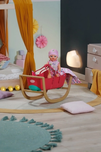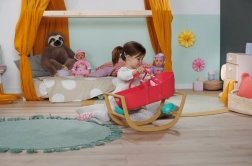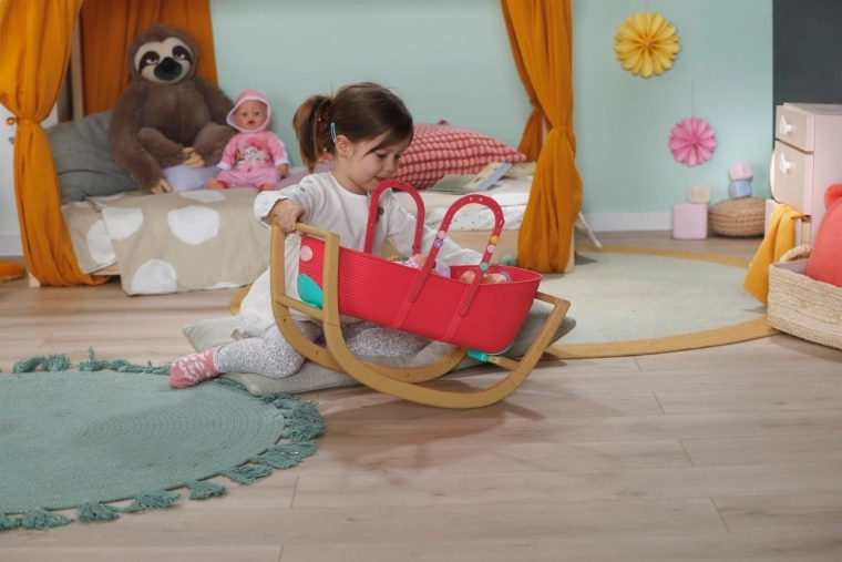 Descoperă pătuțul practic 3 în 1 pentru păpuși BABY born, care crește odată cu imaginația copilului. Într-o clipă îl schimbi dintr-un leagăn elegant într-un coș portabil cu mânere integrate sau într-un pătuț stabil pentru copii. Cuvă din plastic ușoară, combinată cu o bază fixă cu funcție de legănare cu aspect de lemn, pentru transport facil și legănat sigur, lin.