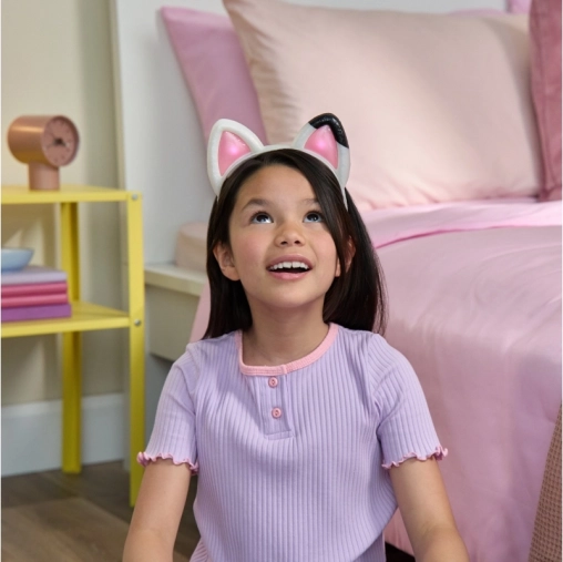Înviorați orice costumație și joc de rol cu bentița interactivă inspirată de serialul Casa magică a lui Gabi. Urechiușele de pisică realiste, cu interior roz și vârfuri negre caracteristice, prind viață cu lumini, sunete și activare la mișcare, astfel încât copiii intră instant în lumea magică a lui Gabi.