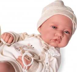 Această păpușă realistă bebeluș de la brandul spaniol Antonio Juan este realizată la dimensiunea 42 cm și oferă un corp complet din vinil cu trăsături autentice de bebeluș. Vinilul moale special utilizat în fabricare este foarte plăcut la atingere, amplificând experiențele realiste în timpul jocului.