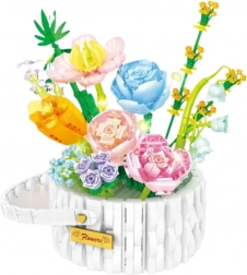 Setul include trandafiri, lalele, lacrimi și alte flori care îi conferă modelului un aspect realist. Florile sunt așezate într-un coș împletit elegant cu mâner, ceea ce face din modelul creat un ornament interesant pentru interior.