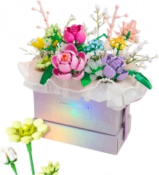 Setul oferă o compoziție florală colorată într-o cutie stilată, care îmbină aspectul buchetelor naturale cu bucuria creației proprii. Cutia cu strălucire metalică și țesătură decorativă din textil completează efectul întregului și creează un cadou magic.