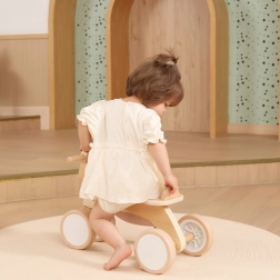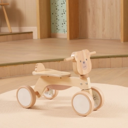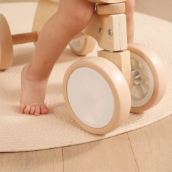 Primii pași în lumea mersului pe vehicul vor fi mai siguri datorită construcției stabile cu patru roți și șeii confortabile cu sprijin împotriva alunecării. Împingătorul este realizat din lemn de calitate și are roți silențioase din EVA, blânde cu podeaua și potrivite și pentru suprafețe exterioare netede.