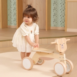 Siguranța este sporită de blocarea direcției, care limitează rotirea excesivă a ghidonului. În timpul jocului, copiii își dezvoltă în mod natural echilibrul, coordonarea și motricitatea grosieră. Partea frontală „de ursuleț” și designul natural se potrivesc perfect în camera copilului.