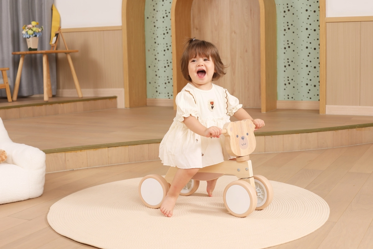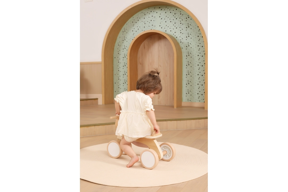 Datorită blocării unghiului de direcție, controlul este lin și sigur, în timp ce „ghidonul” de ursuleț invită la noi plimbări. Stilul scandinav minimalist al seriei PolarB se potrivește perfect într-o cameră de copil modernă.