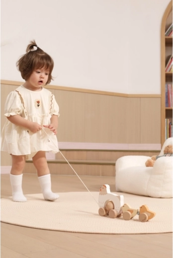 Sprijiniți primii pași și mișcarea naturală a copilului cu jucăria de tras Viga PolarB. La fiecare tragere, puișorii se leagănă jucăuș, motivând la explorări noi. Oul detașabil aduce opțiuni suplimentare de joacă și dezvoltă curiozitatea și motricitatea fină.