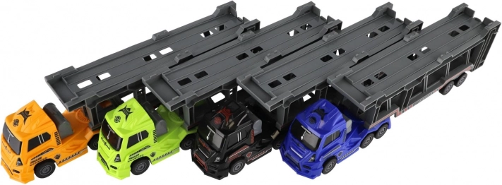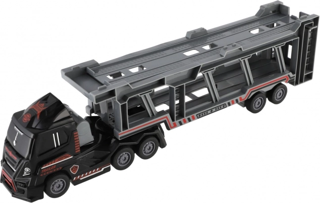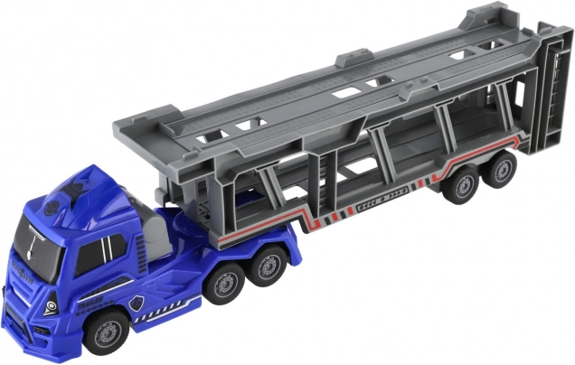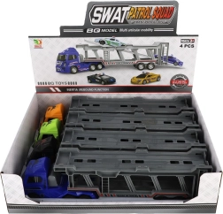 Lansează-te într-o misiune de poliție cu acest camion transportor minunat. Această jucărie are un remorcă cu două nivele rabatabile, asigurând un joc excelent și spațiu suficient pentru vehiculele tale.<9/p>