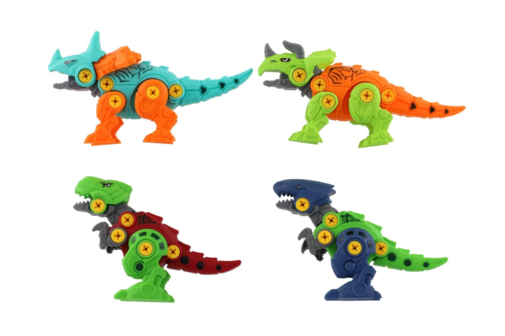 Dinozaurii asamblați au articulații pentru poziționare și culori vii care stimulează jocul creativ.
