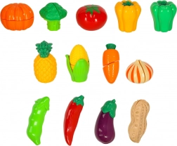 - Fructe și legume cu arici (13 buc): mazăre în păstaie, ardei verde, ardei galben, ardei iute, ceapă, broccoli, porumb, roșie, ananas, dovleac, vânătă, fasole, morcov.