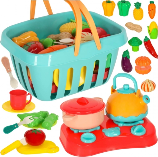 Datorită numărului mare de elemente, copiii pot juca de-a magazinul, bucătăria sau restaurantul. Tăiatul, servirea și „gătitul” cu ceainicul, oala și tocătorul dezvoltă imaginația, comunicarea și sprijină formarea unor obiceiuri alimentare sănătoase.