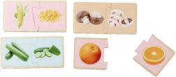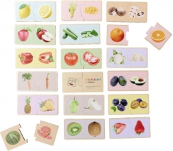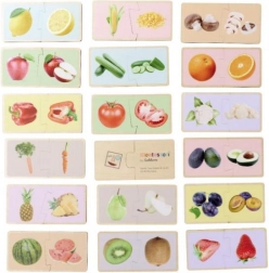 Puzzle-urile Montessori din lemn cu tema fructe și legume îi învață pe copii să potrivească corect piesele identice și să denumească diferitele tipuri de alimente. Ilustrațiile realiste ajută la conectarea jocului cu viața de zi cu zi și susțin învățarea naturală prin joc.